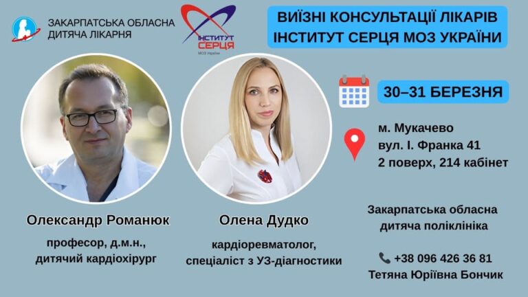 Наприкінці березня у Мукачеві відбудеться виїзна консультація провідних фахівців Інституту серця МОЗ України. Маленькі пацієнти Закарпаття з серцево-судинними захворюваннями зможуть…