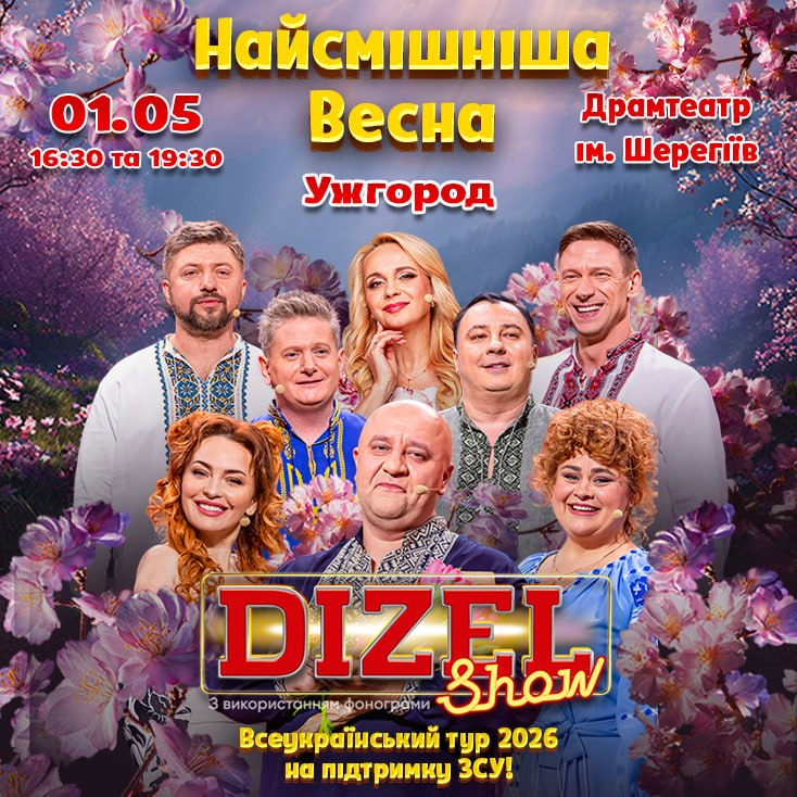Ужгород, чекай настання «Найсмішнішої весни»! Відкриваємо травень із позитивною енергією «Дизель Шоу» та підтримкою ЗСУ! До міста приїжджаємо з двома…