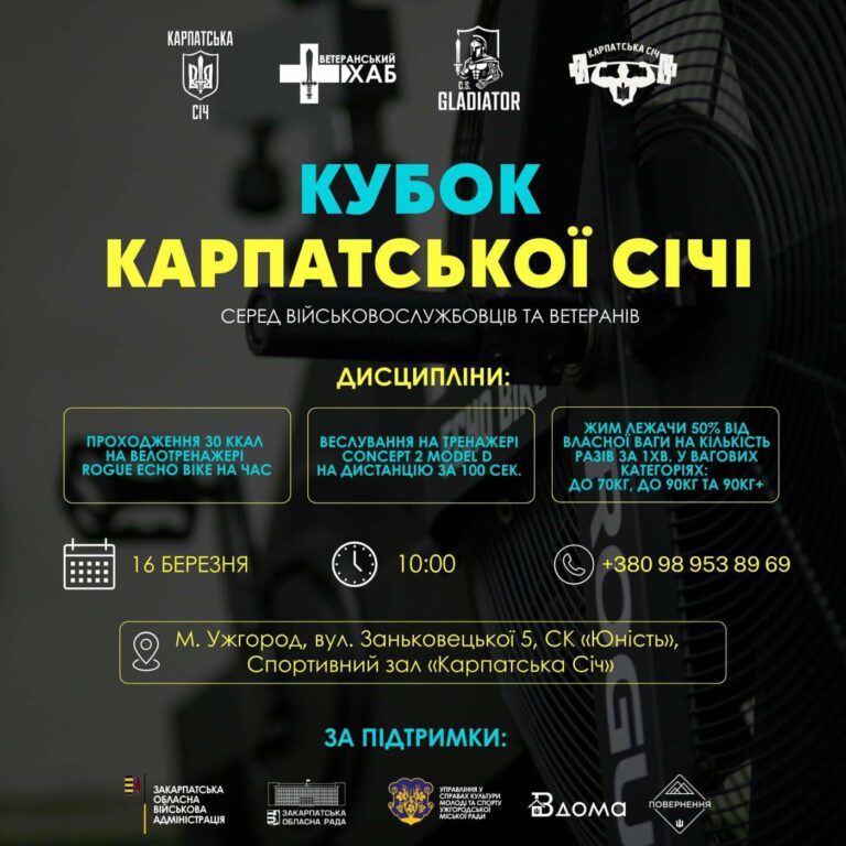 16 березня в Ужгороді відбудеться турнір із функціональних та силових видів спорту серед військових, ветеранів та осіб з інвалідністю, зокрема…