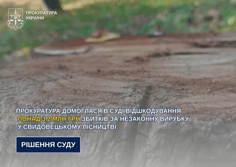 За позовом заступника керівника Закарпатської обласної прокуратури Господарським судом ухвалено рішення про стягнення з державного підприємства «Ліси України» 3,2…