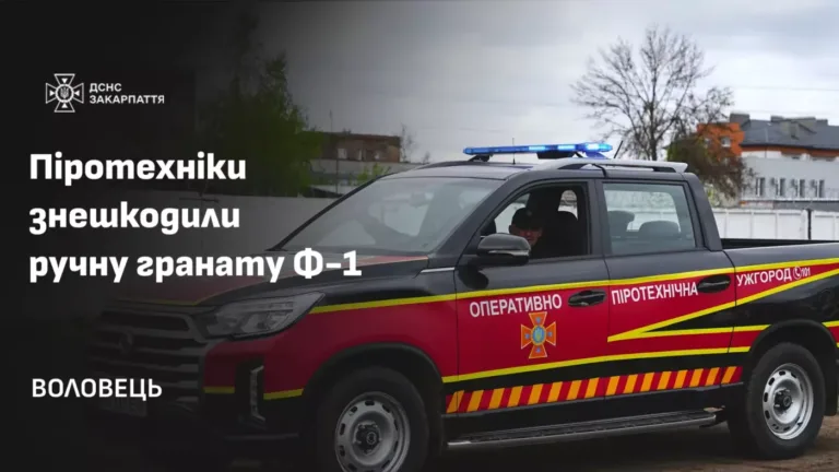 Піротехніки знешкодили гранату Ф-1, яку виявили в селищі Воловець